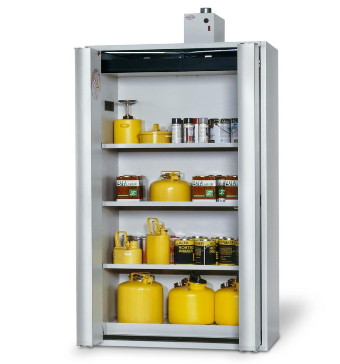 Dine kemikalier kan også udlede giftige gasser, og her er udluftning din redning. Det kan du sikre med et kemikalieskab fra DENIOS, hvor du både får udluftning i skabet, et opsamlingskar i bunden og kan udnytte din plads til fulde med flytbare hylder. Men i sidste ender afhænger det hele af, hvad du skal opbevare, hvor meget og hvordan din virksomhed er indrettet.