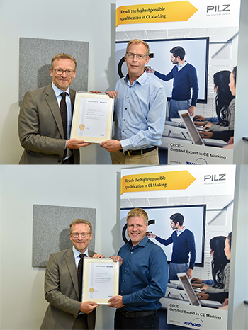Både Bjarne L. Erichs og Tom Lorentzen har også bestået en eksamen, der giver dem licens til at undervise kursusdeltagere i “CECE – Certified Expert in CE Marking” i de nordiske lande. Dette vil give Pilz-kunder mulighed for at nå den højest mulige kvalifikation inden for CE-mærkning.