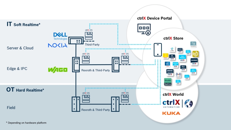Nokia integrerer det virtualiserede operativsystem ctrlX OS i sin Nokia MX Industrial Edge (MXIE) on-premises operationel teknologi (OT) edge-løsning. Forskellige applikationer kører på den, og den har privat trådløs 5G-campusnetværksteknologi. Gennem denne integration kan Nokia MXIE-kunder installere ctrlX OS som en applikation med et klik med musen og dermed betjene deres forretningskritiske applikationer med reduceret latenstid.