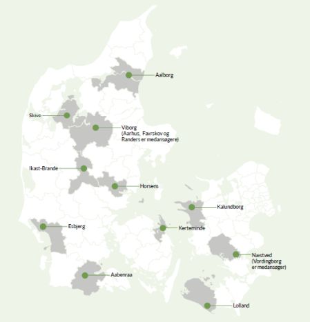 De statsligt udpegede industriparker kommer til at ligge i kommunerne: Kerteminde, Skive, Lolland, Aabenraa, Ikast-Brande, Horsens, Viborg, Næstved, Esbjerg, Aalborg og Kalundborg.